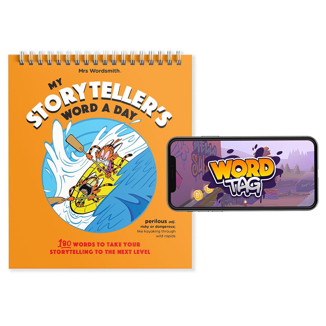 Storyteller's Word a Day boosts vocabulary with 180 hilariously illustrated words. Discover a new illustrated word every day and tell better stories. Ages 7,8,9,10,11.